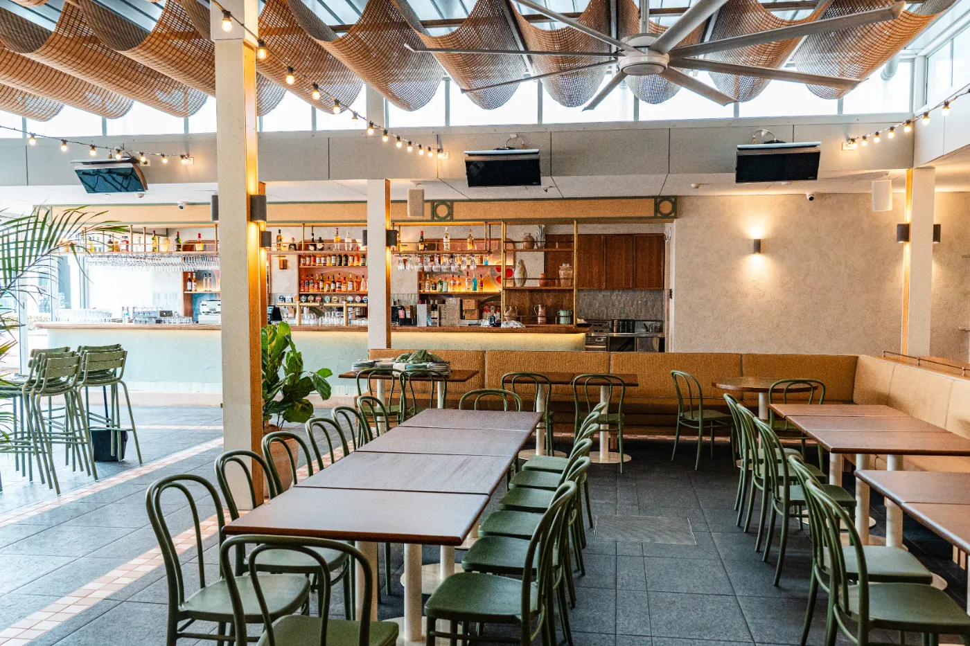 Located on the first floor, enjoy water views of Cockle Bay and sunshine in a stylish, open-air setting, perfect for casual dining or drinks with friends.